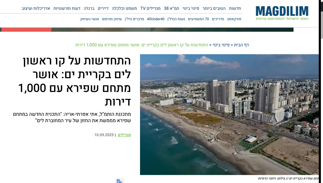 חברות עץ השקד, א.חבר, וא.ד.מ.ר.ל מובילות בימים אלה את תכנונו של מתחם הפינוי-בינוי בקרית ים "חוף השקד". לצפייה בכתבה מתוך "וואלה נדלן" לחצו כאן